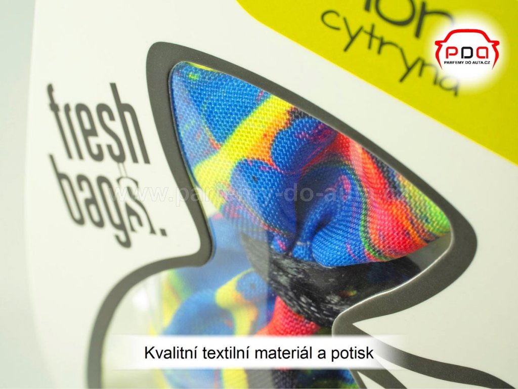 Osvěžovače Fresh Bags jsou unikátní díky svému vzhledu a obsahu kvalitní vůně. Moderní design textilních pytlíčků je vytvořen potiskem ve vysokém rozlišení FHD a v kombinací s obsahem kvalitního vonného granulátu, tvoří skvělý celek, který si zamilujete. Pytlík - sáček o hmotnosti 25g má prodlouženou trvanlivost vůně, díky speciální technologií s použitím vonných kuliček (perel), které jsou dlouhodobým nosičem intenzivních aromatických tónů. Vůně do auta Fresh Bags od Ready Steady dobývají srdce všech řidičů, protože si každý vybere vzhled ve stylu, který je mu blízký.