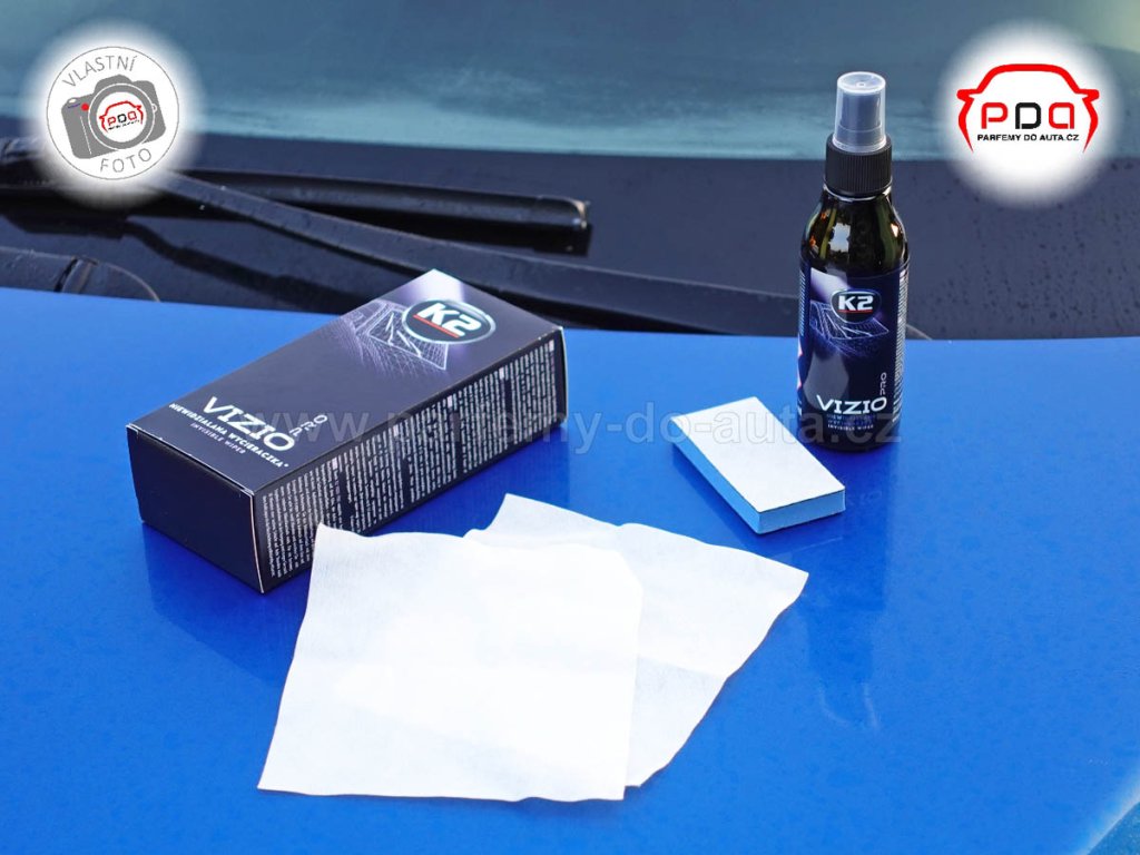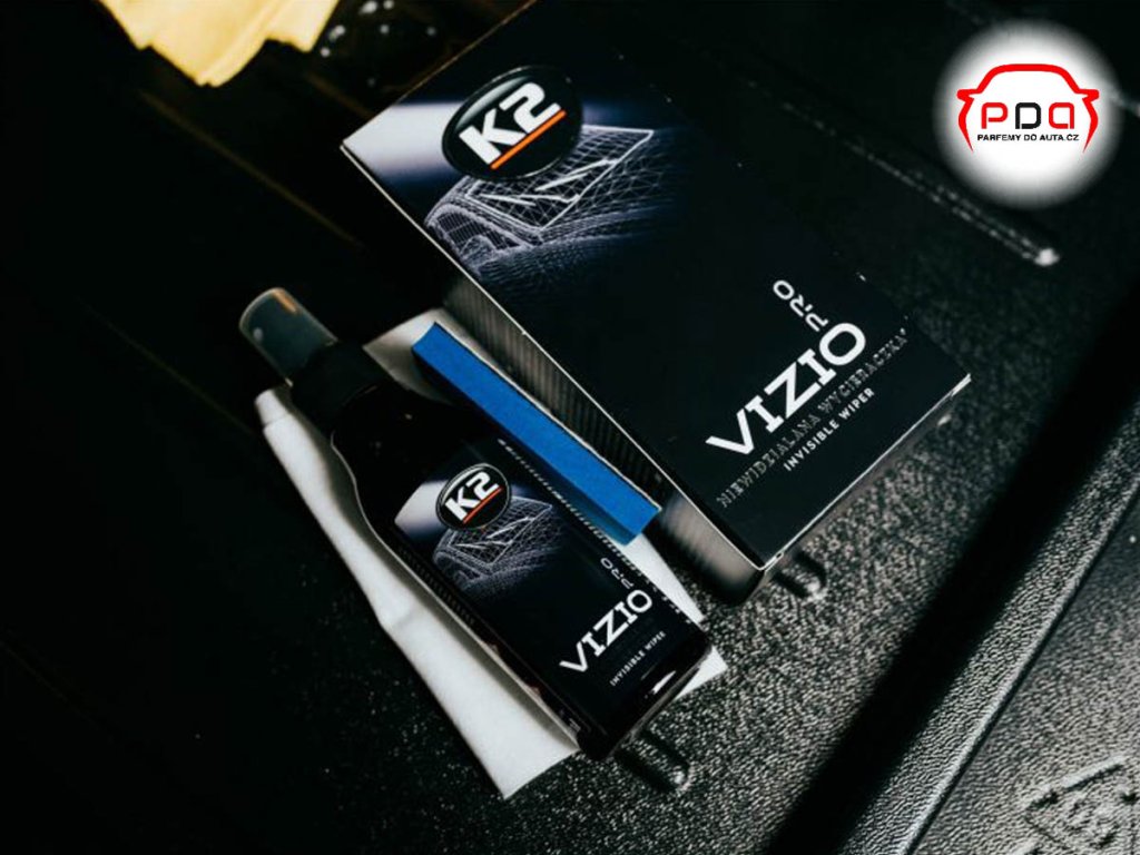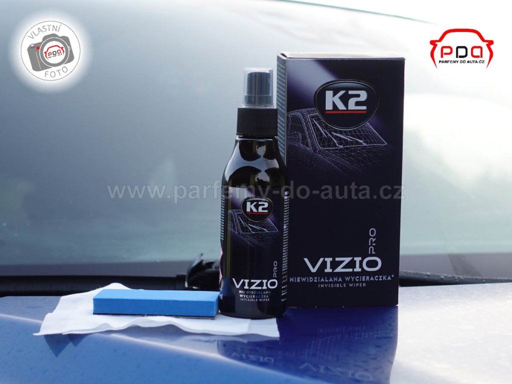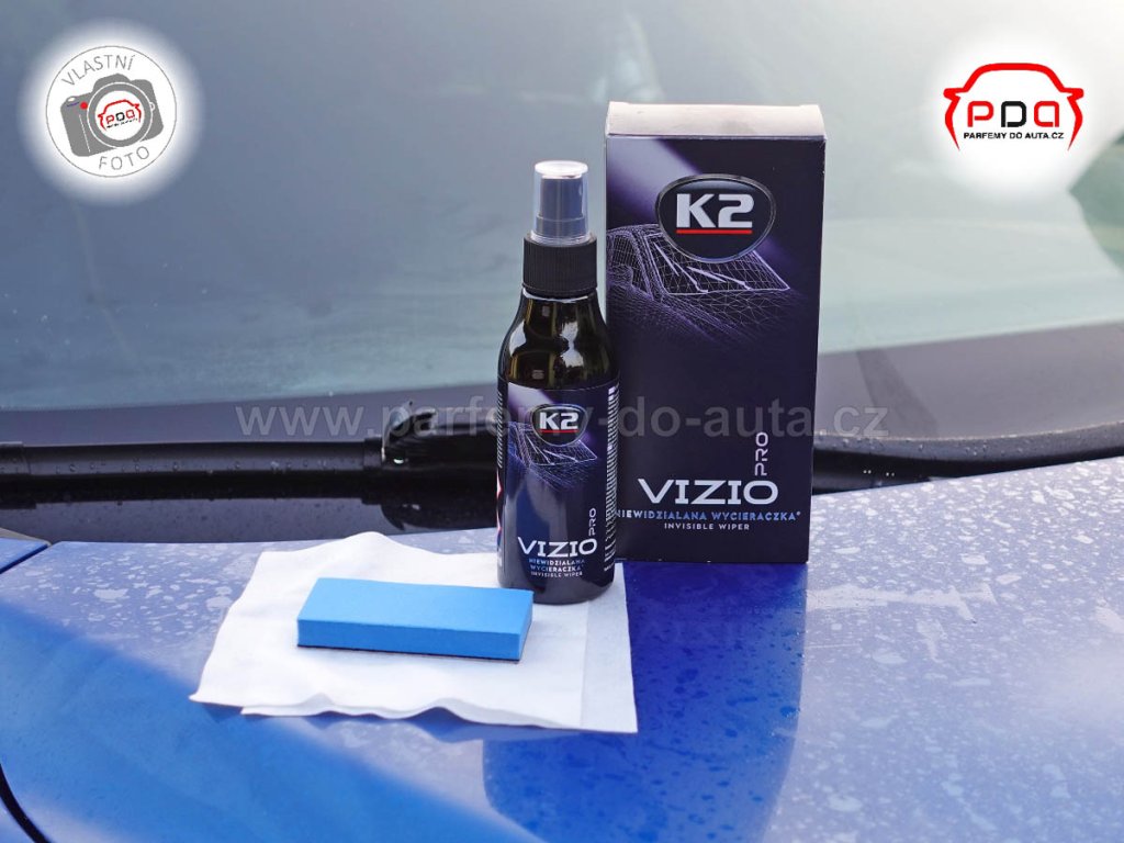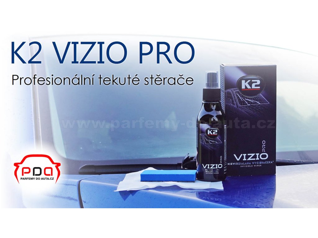 K2 Vizio Pro - tekuté stěrače je moderní produkt, který vytvoří na skle hydrofobní vrstvu - čirý film s vodoodpudivým a antistatickým účinkem. Takzvané neviditelné stěrače jsou skvělý způsob, jak zlepšit viditelnost a bezpečnost jízdy. Zajistí okamžitý odvod vody a tím se zvyšuje průhled přes sklo za deštivého počasí. Jeho nanášení je rychlé a snadné. Profesionální hydrofobní povlak vytváří na povrchu skla odolnou a pevnou ochrannou bariéru, která zlepší viditelnost i bezpečnost a při rychlostech nad 45km/h vytváří účinný efekt, kdy je přes sklo vidět i při nezapnutých stěračích. Účinná vrstva zabraňuje ulpívání nečistot, mastnoty a hmyzu. Povlak K2 VIZIO PRO navíc prodlužuje životnost stíracích lišt, které fungují při menším zatížení a opotřebovávají se pomaleji.