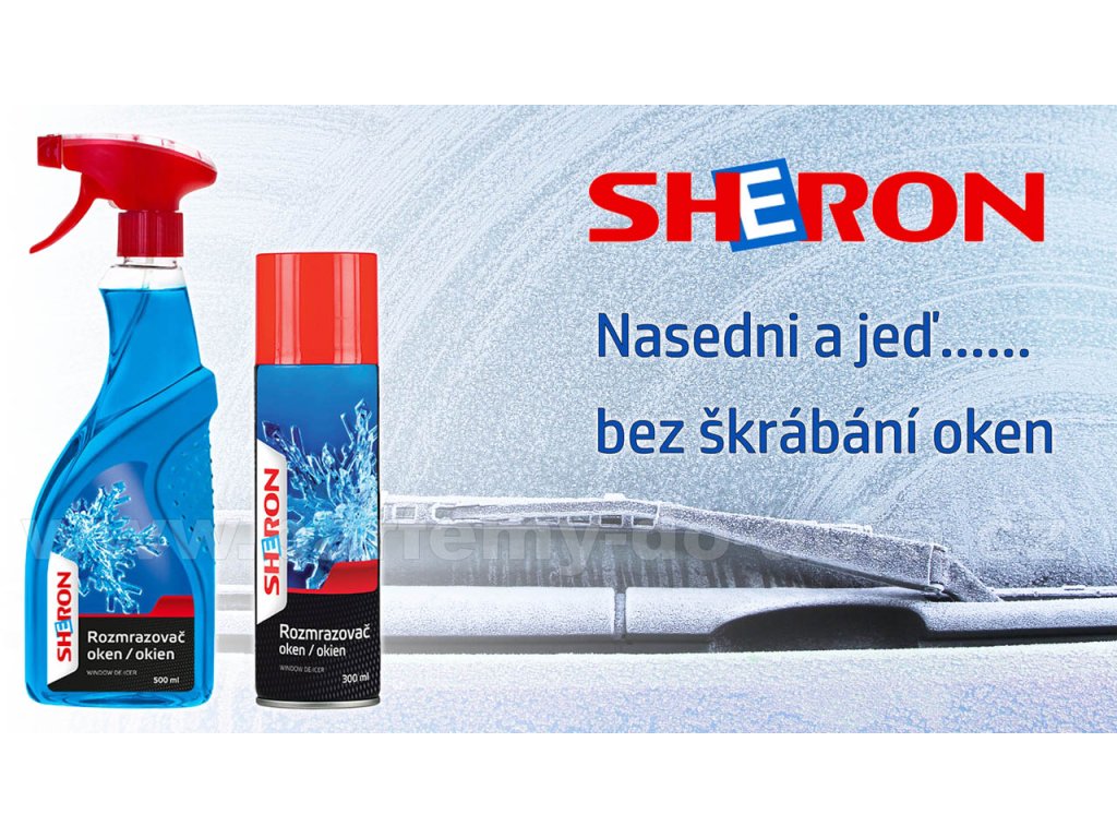 Rozmrazovač skel Sheron je účinný prostředek ve spreji pro odstranění námrazy ze skel automobilu, který dočasně zabraňuje opětovnému vzniku námrazy. Je vhodný také pro odstranění námrazy ze světlometů a zrcátek nebo pro čistění skel od běžného znečistění v teplotách pod bodem mrazu. Rozmrazovač skel obsahuje líh ve vysoké koncentraci pro odstranění i silné vrstvy námrazy. Díky spreji je přípravek rovnoměrně a rychle aplikován na zamrzlou plochu.