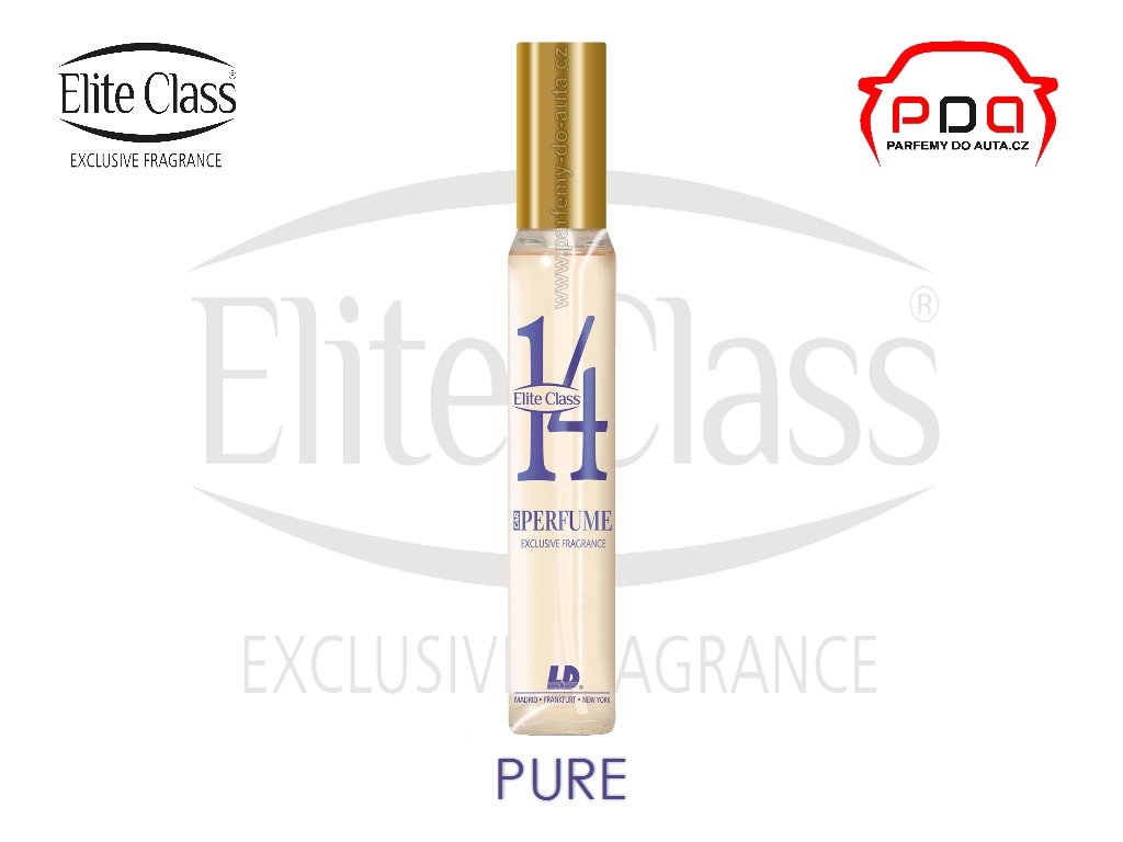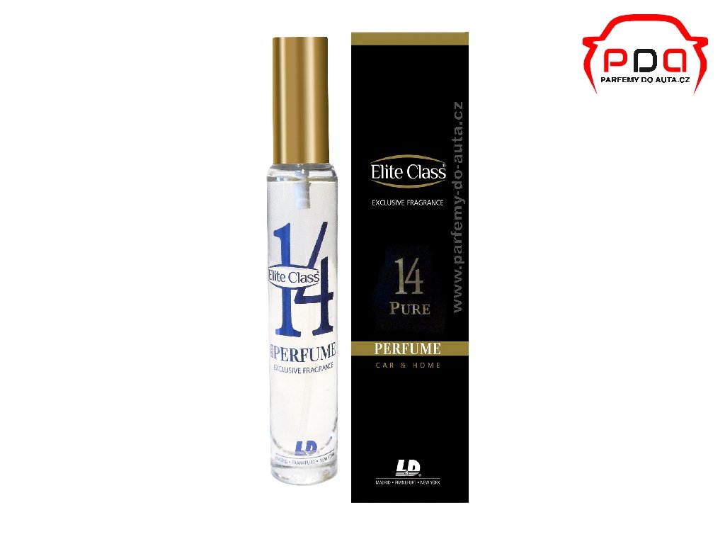 Popis: dámský autoparfém nejvyšší kvality Elite Class No.14 Pure od L&D Aromaticos je luxusní vůně do auta ve spreji o objemu 40ml a závěsnou papírovou visačkou (osvěžovačem).